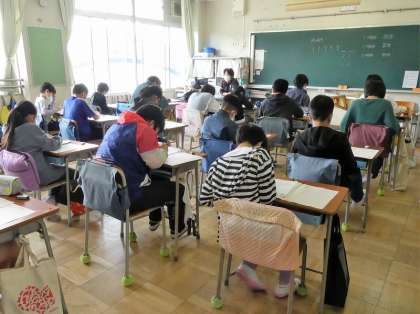 今日は「全国学力・学習状況調査」の日で、6年生が、国語、算数、理科の問題に挑戦しました。いつもの学校のテストとは、やり方が違うので、ちょっと緊張気味の6年生でした。記名のしかたや諸注意などをしっかり聞き、真剣に取り組んでいました。