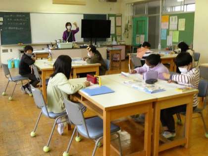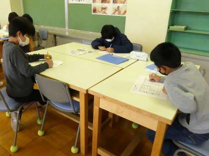 5年生は、ガスこんろを安全に使って、お茶を入れる実習を行います。その前に、いろいろな用具の学習をしました。お家には。ない(知らない)用具もあったので、イラストを見ながら、名前を覚えました。「洗いおけ」「バッド」「蒸し器」などは、知らない子供が多かったです。「たわし」も、見たことはあっても名前が思いだせないようでした。