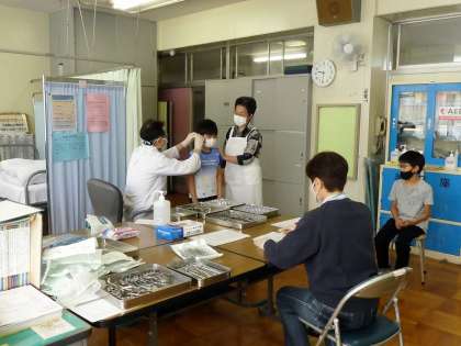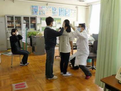 新学期は健康診断の季節です。内科、歯科、耳鼻科など、校医さんによる検診が続きました。受診おすすめのプリントが配布されましたら、早めの受診をお願いします。この日は耳鼻科検診が行われていました。