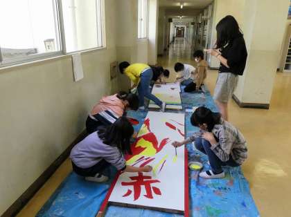 今年も児童会委員会の子供たちが、入退場門を作成しています。どんな絵が描きあがるのか、楽しみです。
