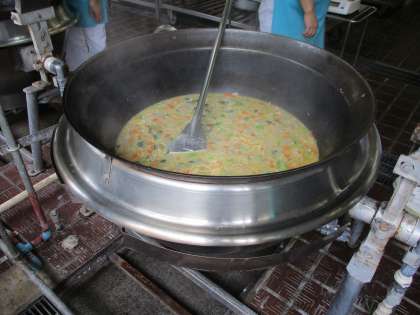 写真3枚目:ふかしたじゃがいもと調味料を混ぜているところ