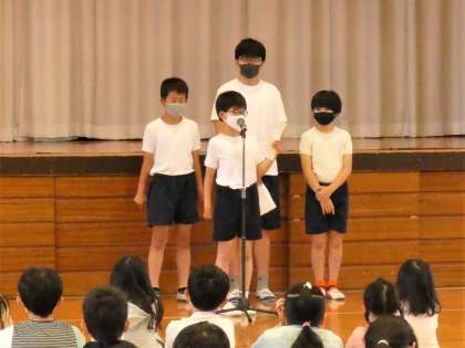 6年生は、秀作が多いので、選ぶのが大変でした。言葉の使い方がとても上手です。教育実習生さんも、発表しました。