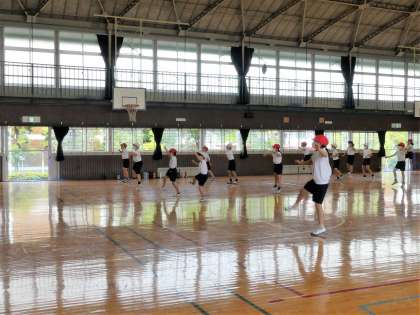 表現種目の練習です。この日は、ボックスというステップと腕の動きを練習していました。両方一緒にやると少し難しいです。