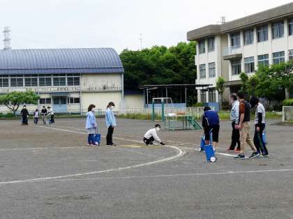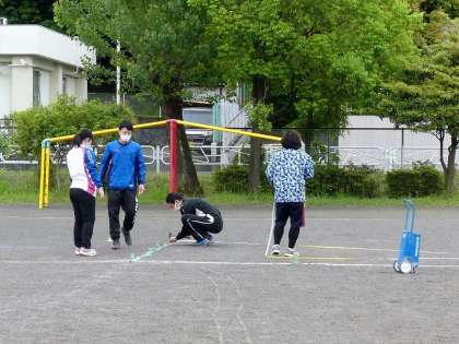 昨日の放課後、先生方総動員で、校庭にラインを引きました。