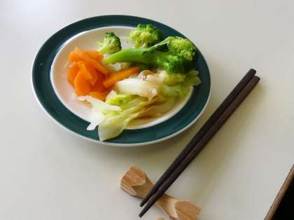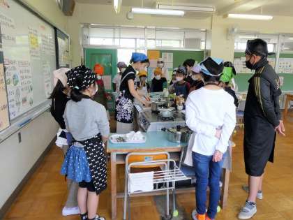 5年生は、家庭の授業で、「ゆで野菜サラダ」を作りました。