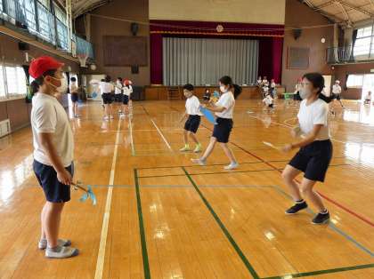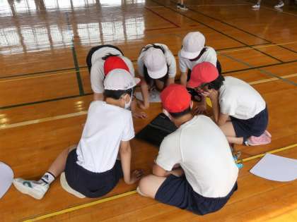 映像を撮って確認したり、6年生が踊りのアドバイスをしたりしていました。