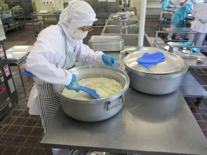 ★ゆばは、水に浸した大豆をすりつぶして絞った汁を温めて表面にできた膜です。この膜は、たんぱく質が豊富です。昔のお坊さんは、たんぱく質が豊富な大豆を使ったゆばを食べていました。