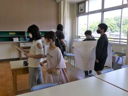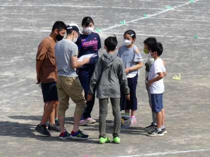準備係は、どの種目で用具を準備するか、校庭で確認していました。会場係は、大プログラムの掲示をしました。