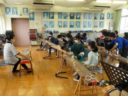 4年生のときは、休校や感染症対策で筝の学習ができませんでした。少しでも体験ができるようにと、授業の計画を変更して取り組んでいます。さすが6年生。短い時間の学習でも、よい音で演奏しています。学習の様子は、10日(金)3校時音楽室でご覧ください。