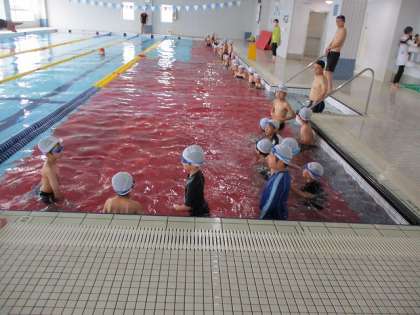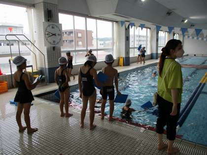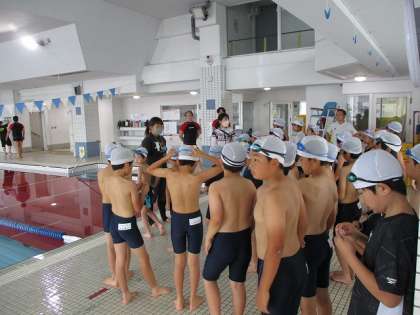 3・4年生は、6月16日(木)にアクラブ堀之内で水泳の授業を行いました。準備体操、シャワー、水慣れの後、バタ足やクロールの練習をしました。