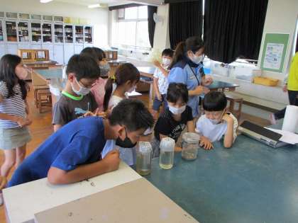 トイレットペーパーとテッシュペーパーの水の溶け方の違いを実験して、実際の下水やオイルボールを見て、匂いを嗅いでみました。川や海を汚さないために、水に溶けないものは流してはいけないことを学びました。