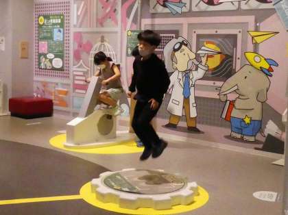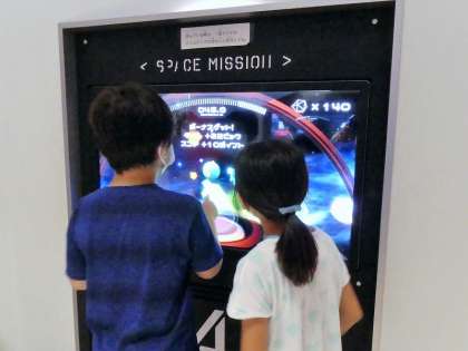 館内の科学実験を楽しんだあとに、プラネタリウムで、月や星の動きを学びました。