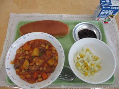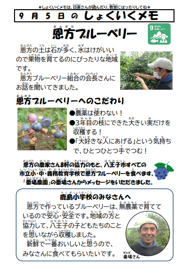 写真2枚目:恩方で作られたブルーベリーにさとう、レモン果汁を加えて煮詰めました。ブルーベリーのほどよい酸味が子供たちからも好評でした。