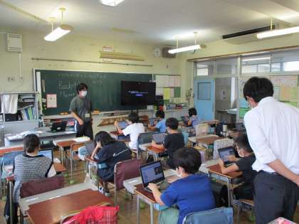 パソコンクラブは、スクラッチを使ったプログラミングでゲームを作っていました。