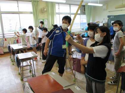 アウトドアクラブは、弓矢で的を狙って放ちました。