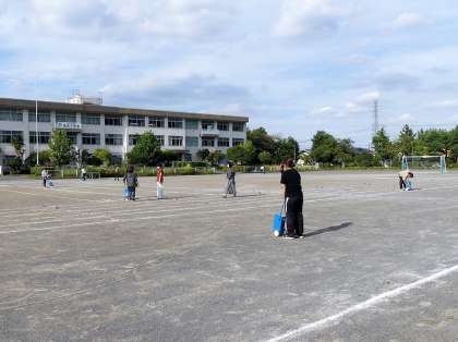 明日は、3年生の交通安全教室が予定されています。その準備として、校庭に横断歩道や交差点のライン引きを行いました。先生方の素晴らしいチームワークで、あっという間に準備が終わりました。