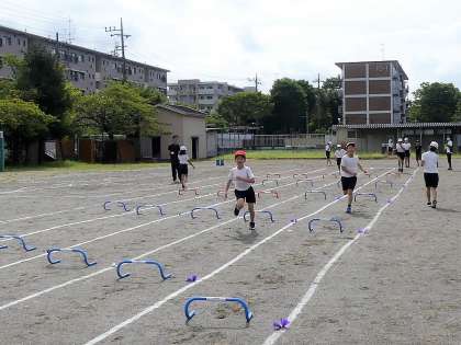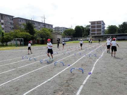 小型ハードルは、自分にあったインターバルを見付けられ、リズムよく走り越える楽しさも味わえます。走りながら笑顔になっている子供が、多くいました。
