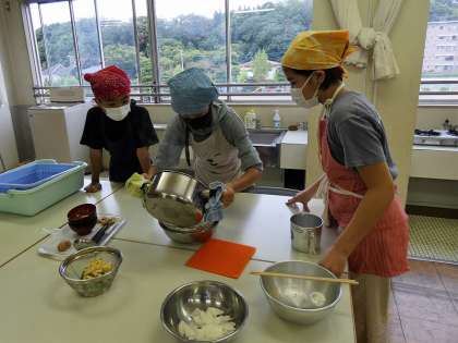 かつお節のだしは、ザルにキッチンペーパーをおいて、こします。