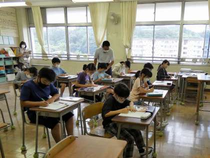 4年生は、習熟度別算数で、2クラスに分かれて授業を行いました。「計算の順序を考えて、その仕方を説明しよう」というめあてで、( )のある式や四則の混じった式の計算の順序について、学習しました。