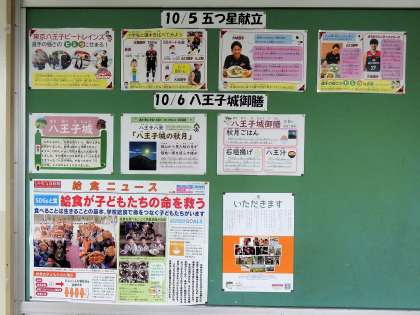 旬の食材は、「さつまいも」「さんま」「さば」です。特集は、「五つ星献立」と「八王子城御膳」です。「五つ星献立」では、八王子ビートレインズ(バスケット)選手からのメッセージもあります。