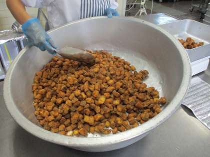 写真2枚目:真鯛の香り揚げを配缶しているところ