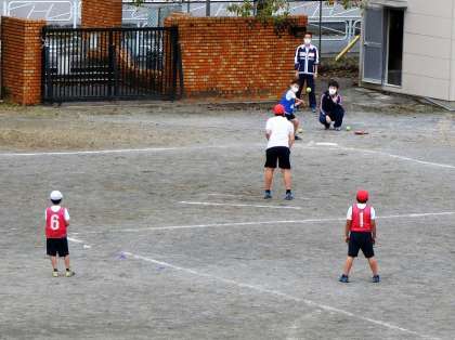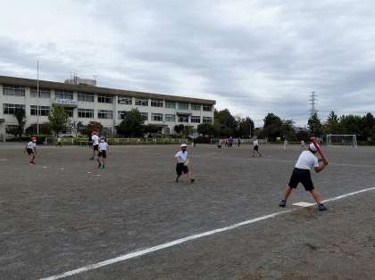 運動クラブは、ベースボール型ゲームを行いました。バッティング練習の後、試合をしました。