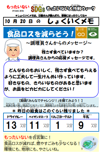 10月20日(木)の給食