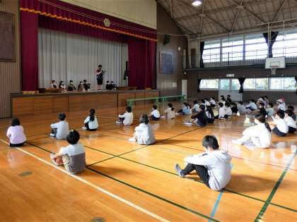 今朝は来週から始まる読書週間に向けて、図書委員会の集会発表がありました。