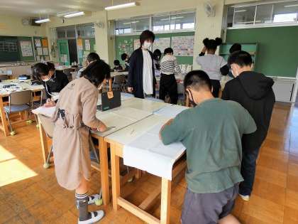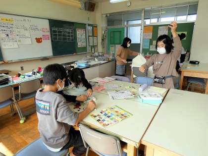 5年生は、クッションを作っています。この時間は、クッションにつけるマスコットの型紙を作っていました。