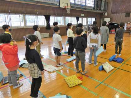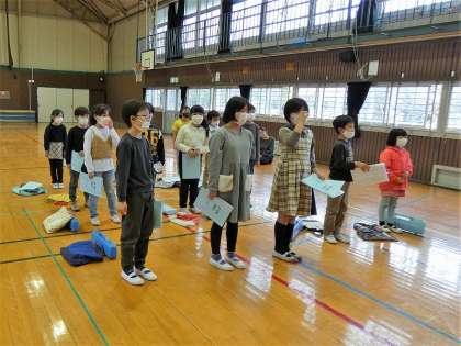 1・2年生は、ある物語を、歌、合奏、セリフで表現します。今日は、2年生だけの練習を体育館で行いました。2年生らしい明るい歌声が響いていました。
