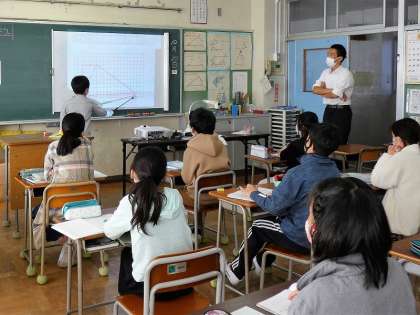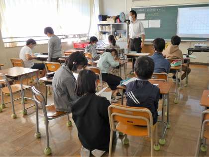 6年生の算数・習熟度別グループです。方眼を使って、図形の拡大図や縮図をかきのですが、方眼のマス目を数え間違えなど、形がいびつになることがあります。この時間は、気を付けるポイントをペア学習で考えながら、全体で共有し、ミスなく作図できるように、学習しました。