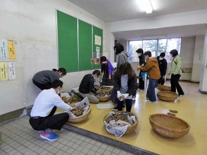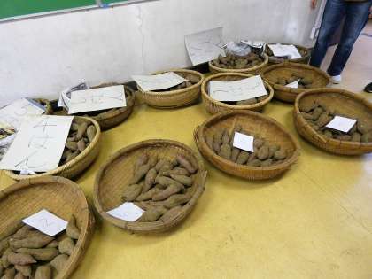今週の土曜日は、収穫祭です。今年は、サツマイモが豊作でしたので、お持ち帰り(生のサツマイモ)もあります。楽しみですね。写真は、持ち帰り用のサツマイモを分けている先生方です。