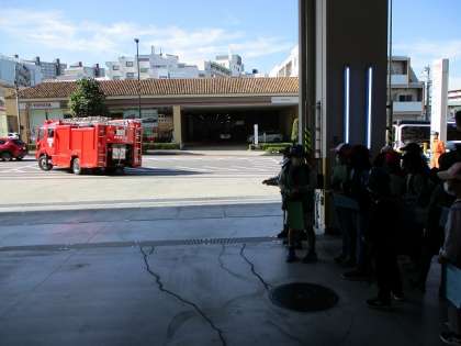 消防署の建物の中に入らせていただいたり、実際の緊急出動の様子も見ることもできたりしました。命を守る仕事の責任の重さを学習しました。