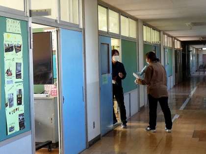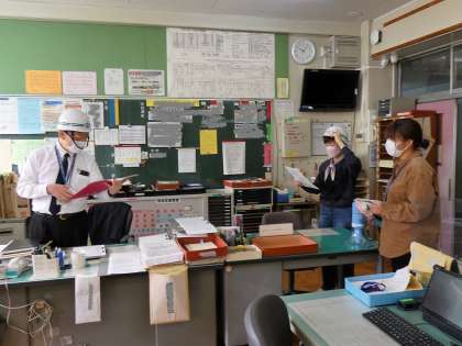 11月の避難訓練は、放送機器が使えない場合の想定で行いました。給食室から出火したと、栄養士から連絡があり、職員室にいた先生方が拡声器を持って、各階に避難の連絡をしました。