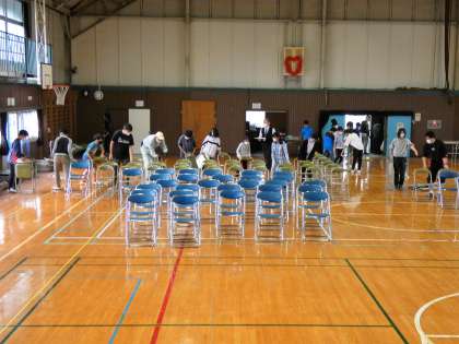 音楽会に向けて、体育館の準備をしました。パイプいすを並べたり、飾り付けをしたりしてくれました。めくりプログラムにもご注目ください。
