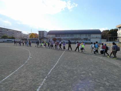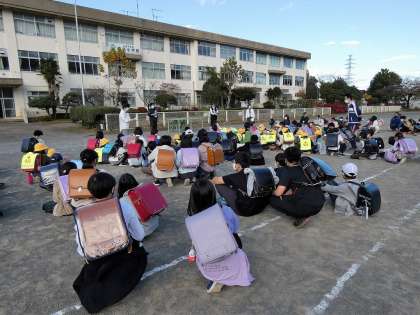 「近隣で不審者の情報がある」などの災害発生時に、集団下校を行うことがあります。鹿島小では、10の地区班に分かれ、6年生が子供たちを並ばせます。本日、今年度2回目の訓練を行いました。