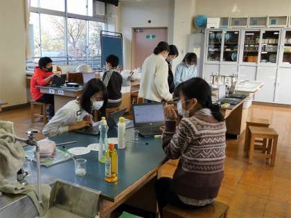 6年生のこれまで学習した内容からテーマを決めて、自由研究に取り組んでいます。教科書やノート、インターネットなどで、これまでの学習を振り返り、研究の手順を考え、実験をしています。