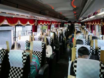 6年生は、社会科見学で国会議事堂などに行きます。バスの内装がきれいで、マジシャン(?)が出てきそうです。
