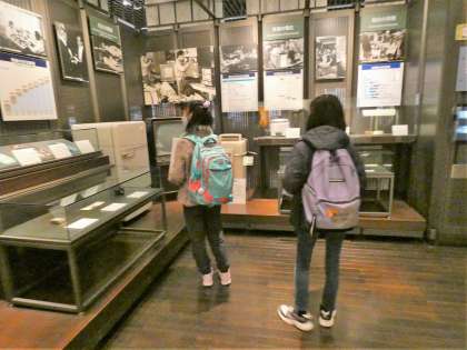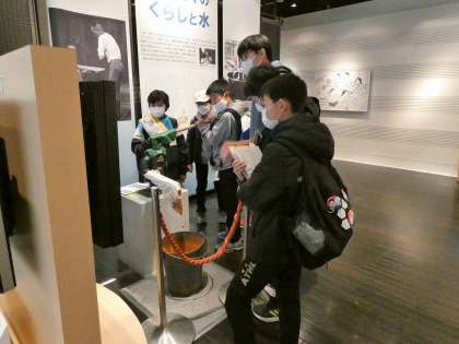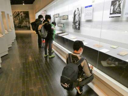 6階では、終戦から昭和30年頃までの復興に向けたくらしの移り変わりを伝える資料を紹介しています。三種の神器は、ちょうど社会で学習したところでしたね。みんな、熱心にメモをとって見学していました。