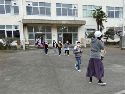 1月の避難訓練を実施しました。今回は予告なしで、中休みに給食室より出火したという想定です。また、校長、副校長が不在という設定でもありました。どんな時でも、大人も子供も対応できるように訓練を重ねています。