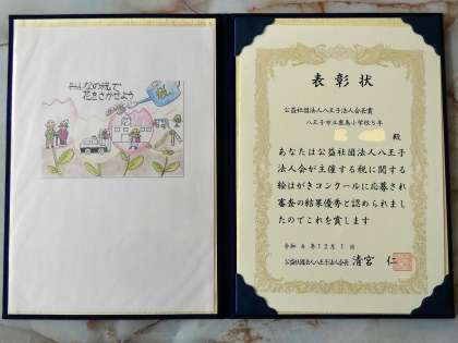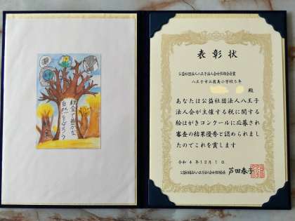 夏休みの自由課題にした「税に関する絵はがき」は、市内小学校から700点を超える応募があったようです。入選者15名にうち、3名が鹿島小の児童でした。