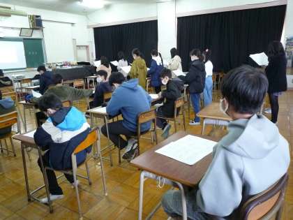 音楽は、2部合唱にチャレンジしました。いつもとは違った場所で、違った先生で、違った内容に戸惑いつつも、真剣に取り組んでいました。中学校への期待を大きく膨らませ、楽しく授業を受けることができました。