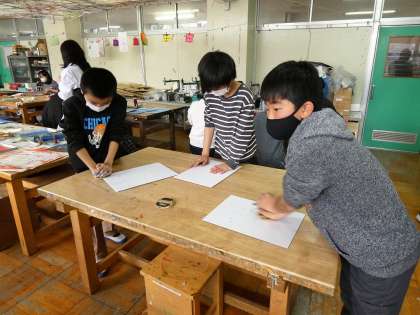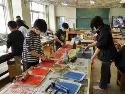 5年生 図画工作 「ほり進めて刷り重ねて」
