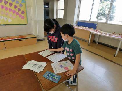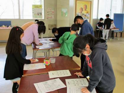 英語のプリント「コグトレ」にチャレンジしました。認知機能トレーニング(記憶、知覚、判断・推論など)の英語版です。友達と相談しながら頑張っていました。