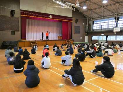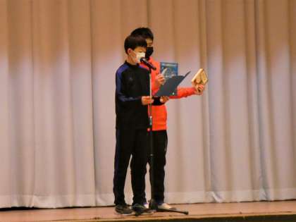 図書委員さんより、読書週間のお知らせがありました。来週の14日(火)から24日(金)までです。図書ビンゴや塗り絵に取り組むと、景品(しおり)がもらえるそうです。みんなで、図書室に行きましょう。