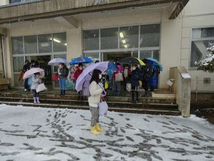 2年生から6年生も下校しました。昇降口から門までの間で、手袋(片方)と折り畳み傘の袋が落ちていました。落とし物コーナーに置きますね。