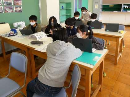 一汁一菜の献立を考える学習です。栄養バランスや旬の食材を取り入れて考えた献立から、調理実習を行います。