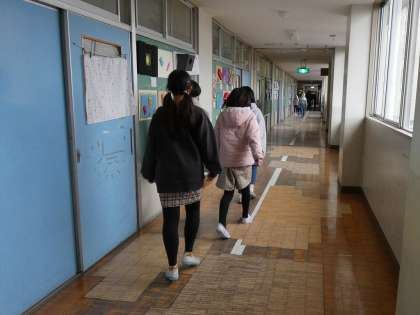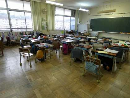 2月の避難訓練は、予告なしで昼休みに実施しました。今日は、雨でしたので専科教室や図書室にいた子供たちも、その場で自分の身を守る行動をとりました。休み時間に地震が発生したときの基本的な退避行動を、よく理解できました。