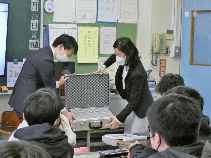 歳入や歳出など、少し難しい言葉も出てきましたが、これから中学校へ入学する6年生にとっては、大切な勉強となりました。国の財政は、〇〇〇〇兆円などと、大きな数字なので、具体的に考えるために、1億円のレプリカも登場しました。