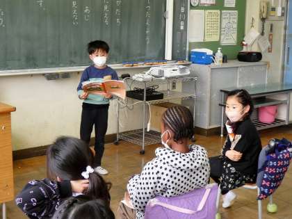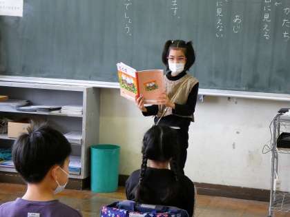 「はじめます」と言ってからクイズを出し、「さて、なんでしょう」と話したら、聞いていた友達が答えを発表します。